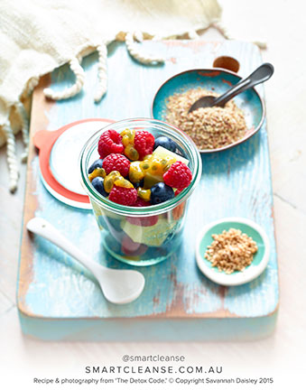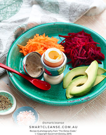 You can consume 3 organic meals a day comprised of protein, vegetables, fruit week 2, good fats, seeds, purified water and caffeine - free herbal tea, along with avoiding the 4 major toxins: caffeine, alcohol, sugar and table salt.